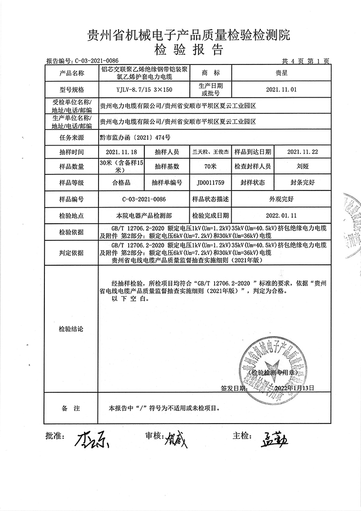 上一篇:聚氯乙烯絕緣聚氯乙烯護(hù)套電力電纜(銅芯聚氯乙烯絕緣聚氯乙烯護(hù)套電力電纜)國(guó)抽檢驗(yàn)報(bào)告