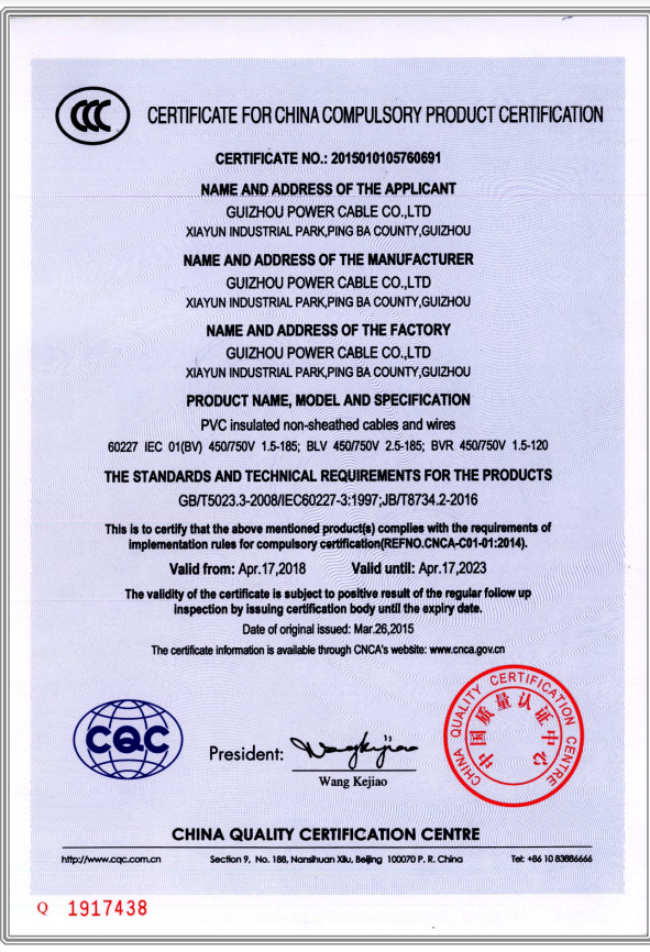 • CQC產(chǎn)品認(rèn)證證書